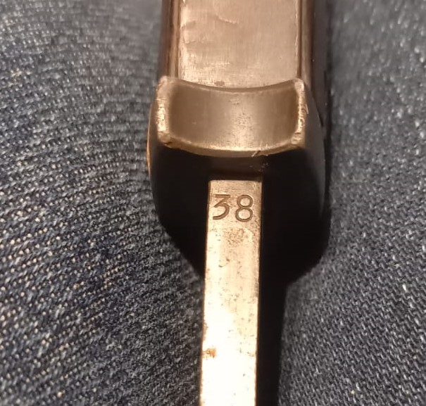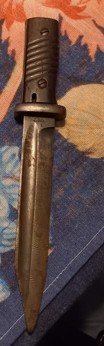 Jakiś czas temu kolega pokazywał mi niemiecki, najwyraźniej skrócony z dwóch stron, obrzyn bagnetu do Mousera J.Sch. (Jetter & Scheerer) z 1939.