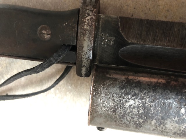 Na tej stronie mamy numery seryjne - na bagnecie i pochwie powinny być takie same.