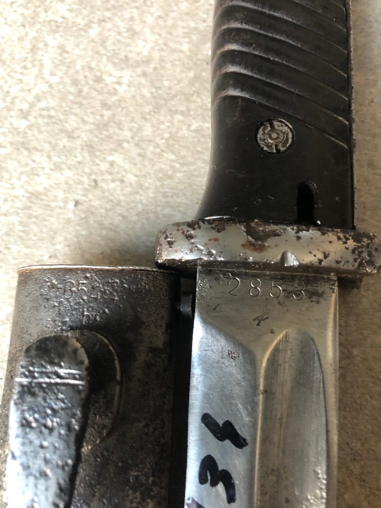 Bardzo ładna niemczyzna, wymagające nieco oczyszczenia i konserwacji, jednak na szeroko pojętym "rynku" zgodne bagnety tego typu rozchodzą się jak świeże bułeczki.
