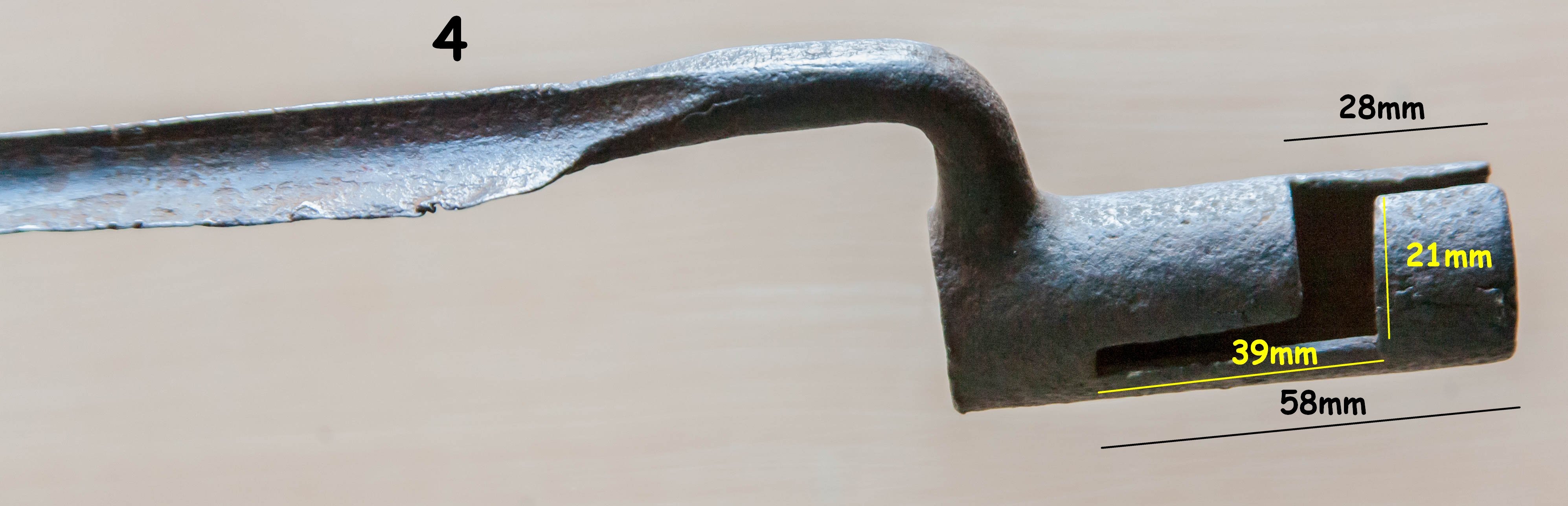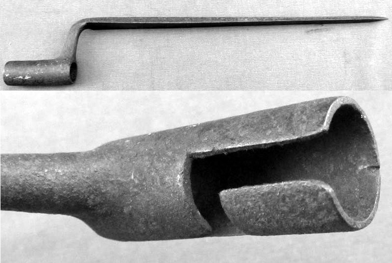 Wszystko - długość głowni i konstrukcja tulei - wskazuje na francuski bagnet do muszkietu M 1750