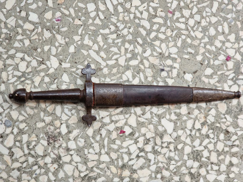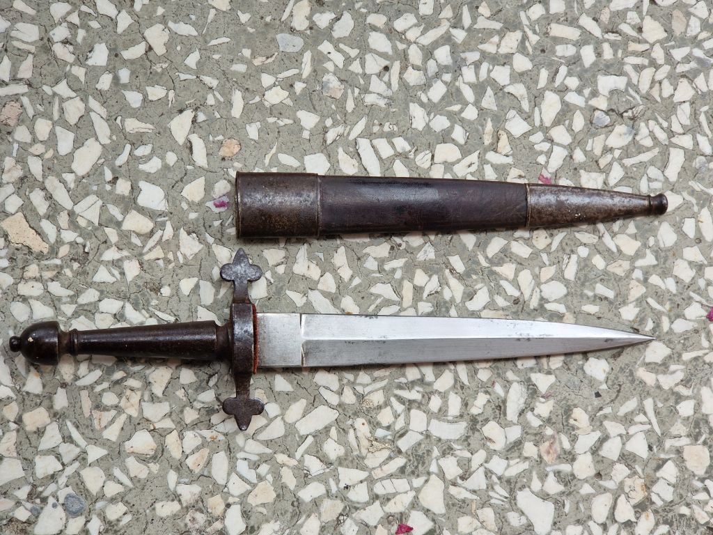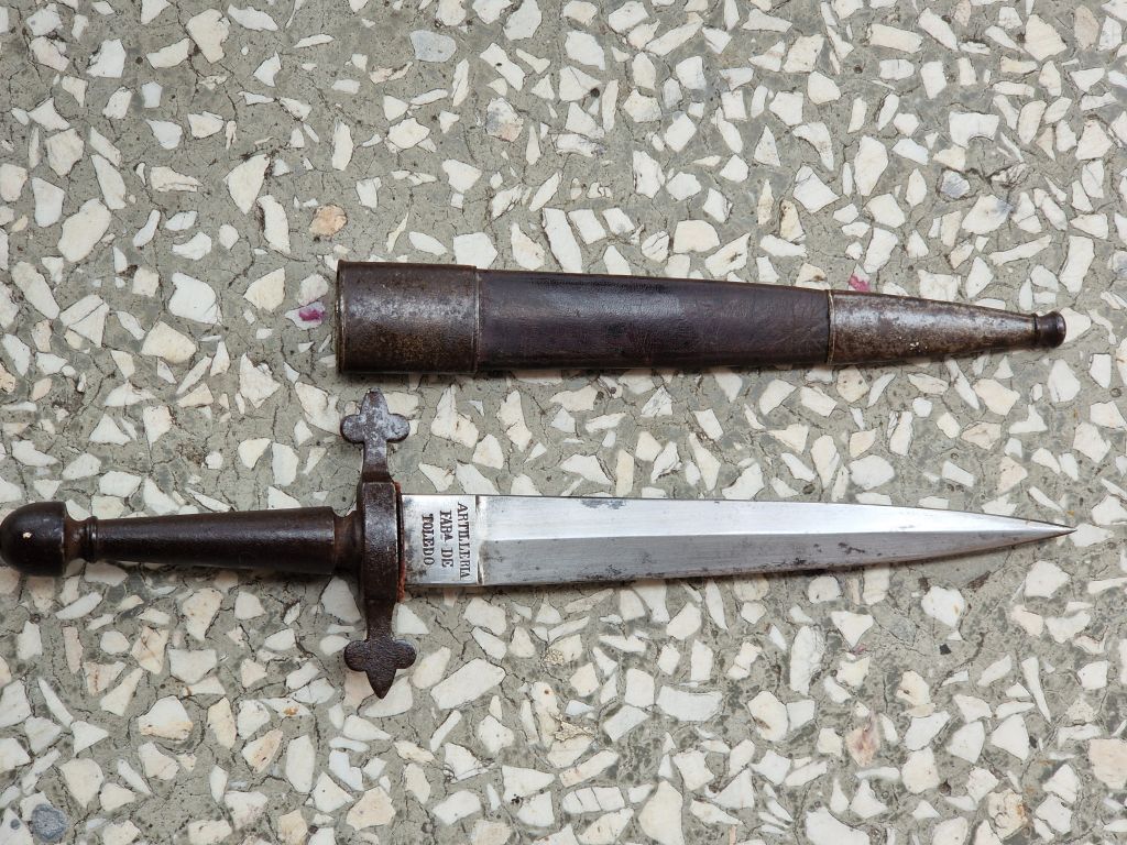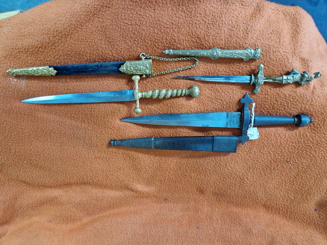Na zdjęciu widzimy kilka sztyletów; te mosiężne wyglądają na cywilne (?) ale ten Toledo może nie (?)