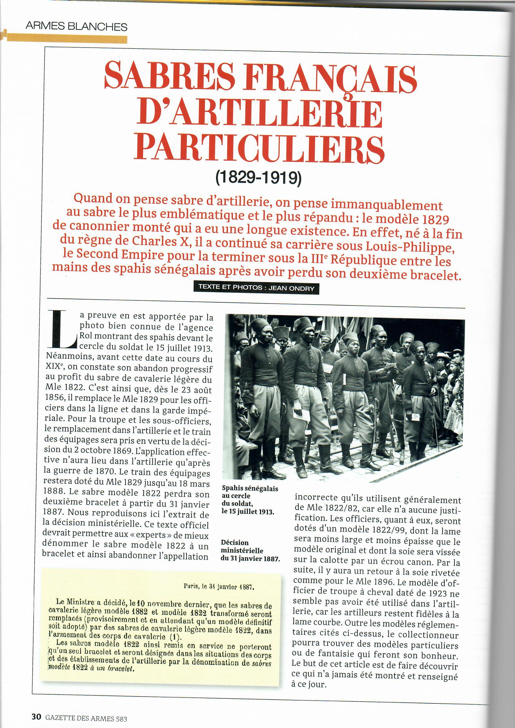 Nie daje przekładu bo dziś po kliknięciu aparatem danej stronki mamy tłumaczenie a każdy może użyć translatora, który najbardziej mu odpowiada. Artykuł popełnił Jean Ondry, dość regularnie pisze on dla tej gazety; napisał też 4 książki o francuskiej broni białej. Generalnie zajmuje się okresem 1815-1919. Z moich informacji wynika, że przygotowuje książkę o francuskiej szabli Marynarki Wojennej.