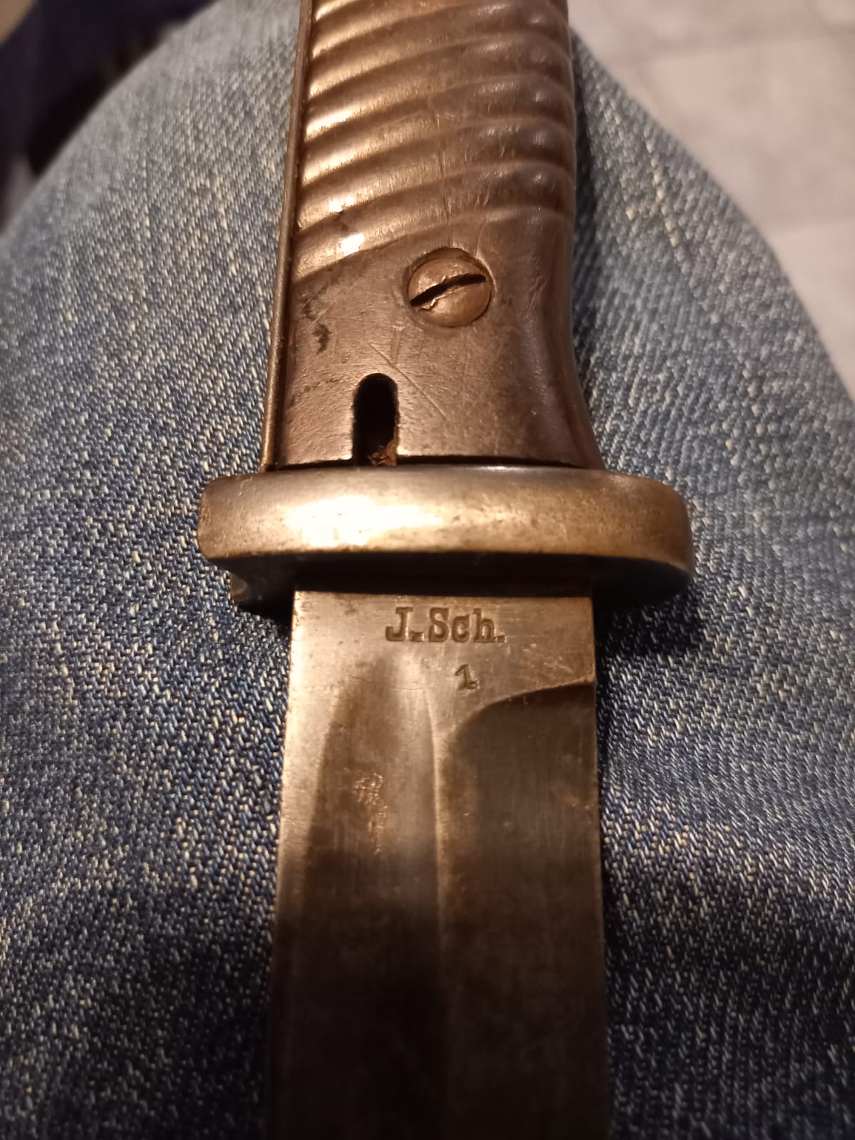 Jakiś czas temu kolega pokazywał mi niemiecki, najwyraźniej skrócony z dwóch stron, obrzyn bagnetu do Mousera J.Sch. (Jetter & Scheerer) z 1939.