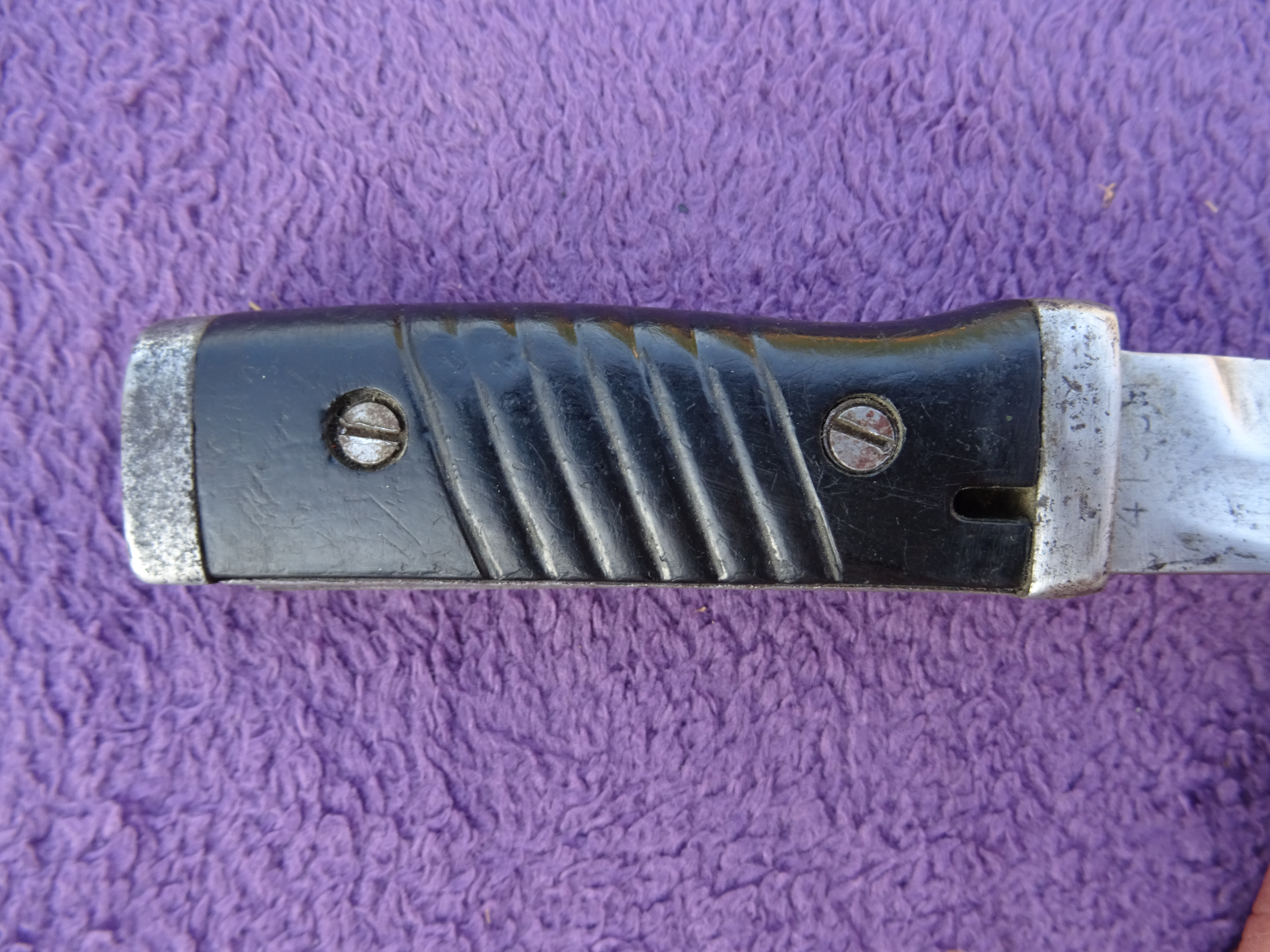Przedwczoraj trafił w moje ręce kolejny bagnet, okaleczony w podobny sposób. Co ciekawe pochwa bardzo ładnie współpracuje z głownią.