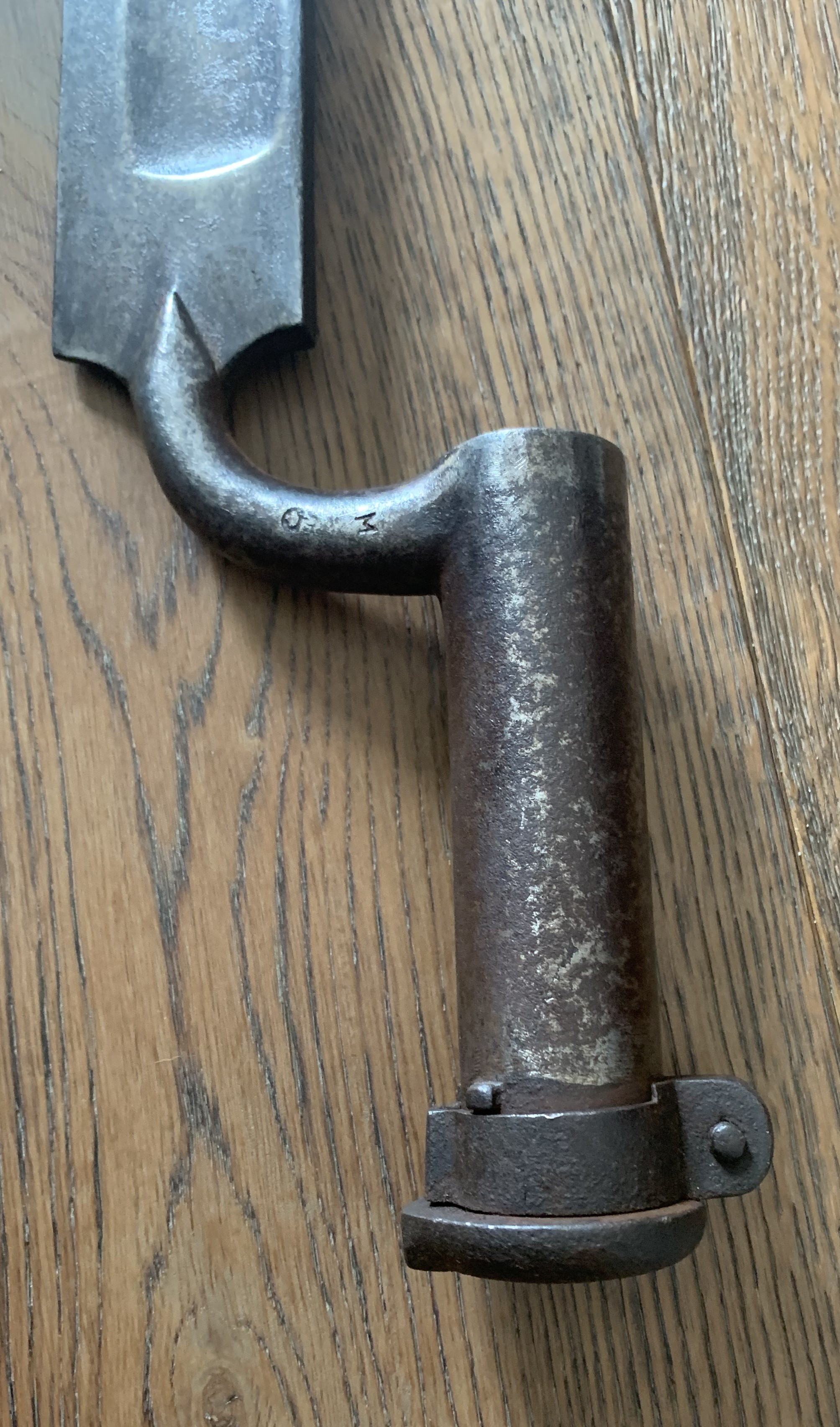 Chciałem pokazać bagnet austriacki. Dawno nie sięgałem do pana Królikiewicza a dziś chcąc zidentyfikować tego kolosa - zajrzałem. Bagnet tulejowy z sieczną głownią - było ich podobno kilka podgatunków w Austrii; ten chyba najdłuższy - prawie 80 cm. Czyli będzie to wzór jak w tytule. Chciałbym prosić o potwierdzenie modelu i rozczytanie 2ch punc.