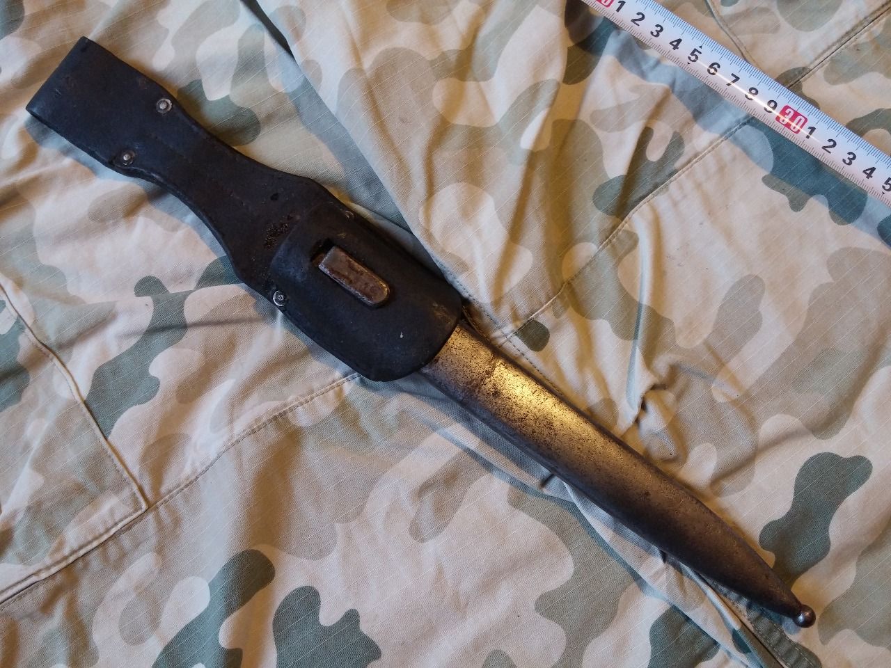 Pochwa czeskiej produkcji do bagnetu do karabinu Mannlicher M1895. Producent to "Moravske Ocelarny", Morawskie zakłady stalowe.