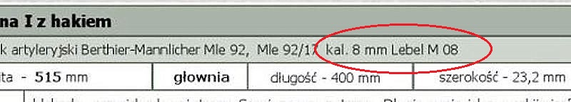 Jacku - ten fragment opisu dotyczy naboju, kalibru i typu - w tym przypadku nabój kal. 8 mm typu Lebel M 08.