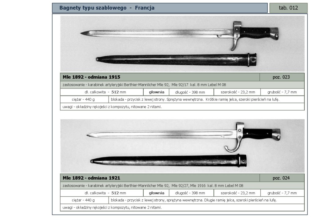 Biorąc pod uwagę - Mousquetons Berthier'a - to mamy model Mle 1892 artyleryjski