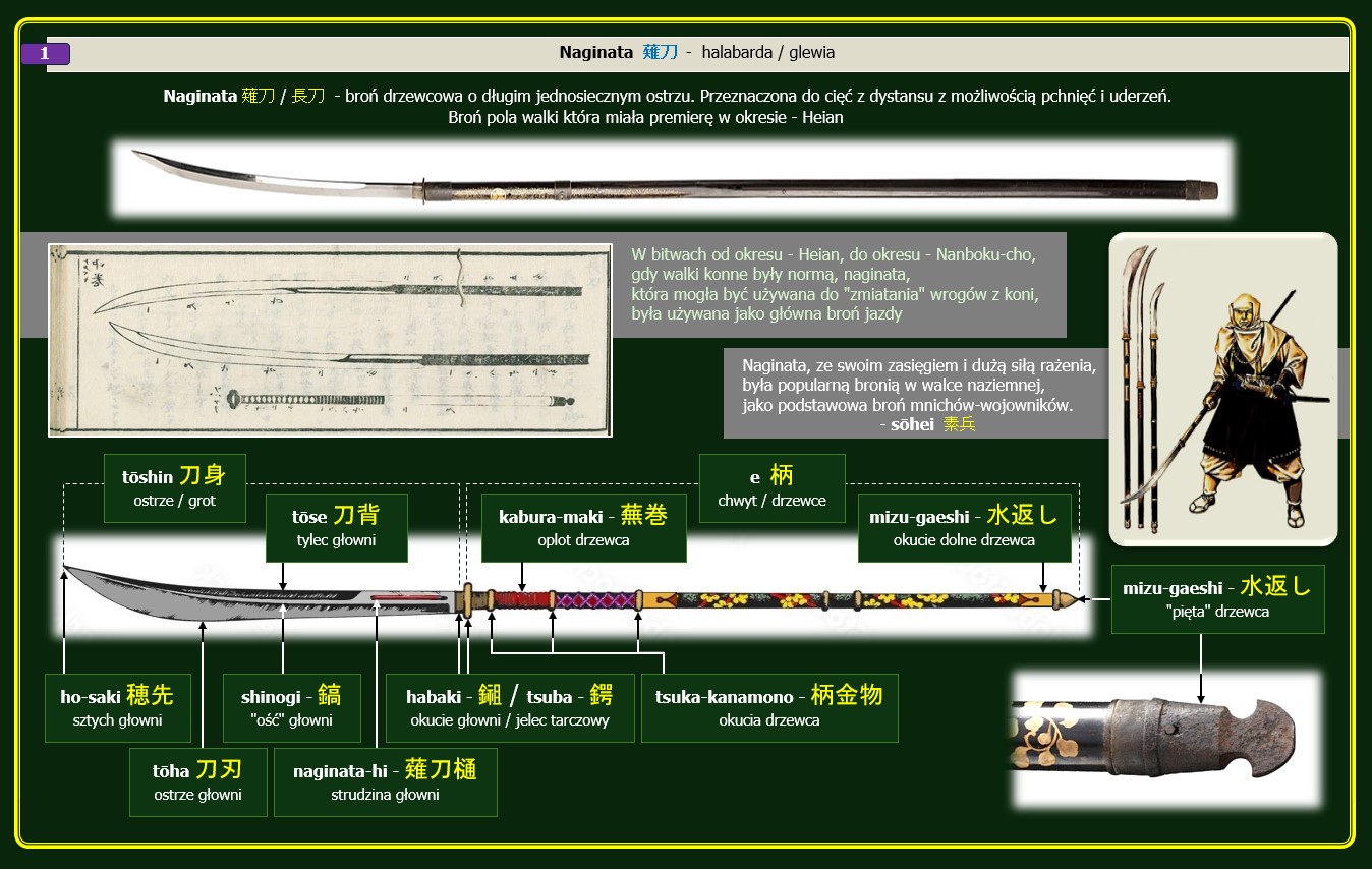 Wraz z przejściem głównej taktyki na japońskim polu bitwy z łucznictwa konnego na walkę pieszą, narodziła się - naginata 薙刀