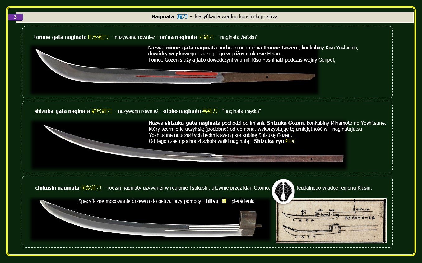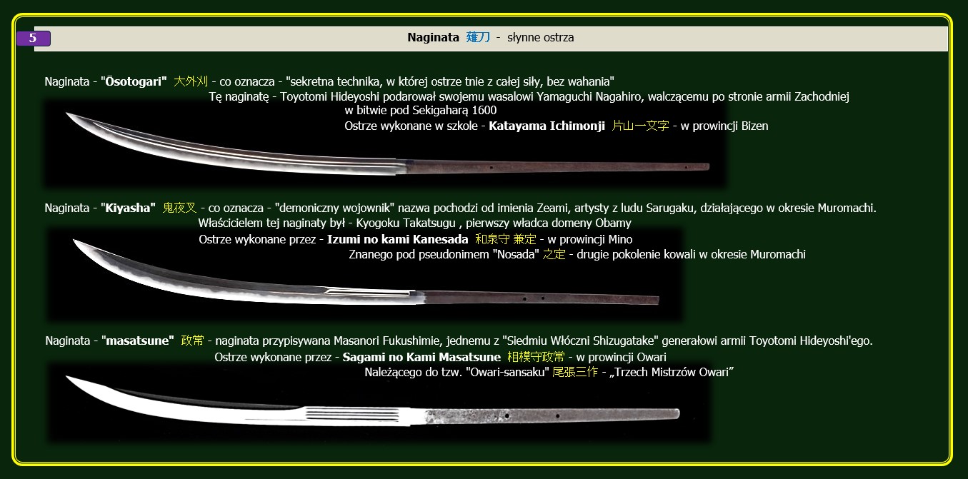 W okresie - Edo kobiety z rodzin samurajskich miały obowiązek nauczyć się sztuki władania naginatą.