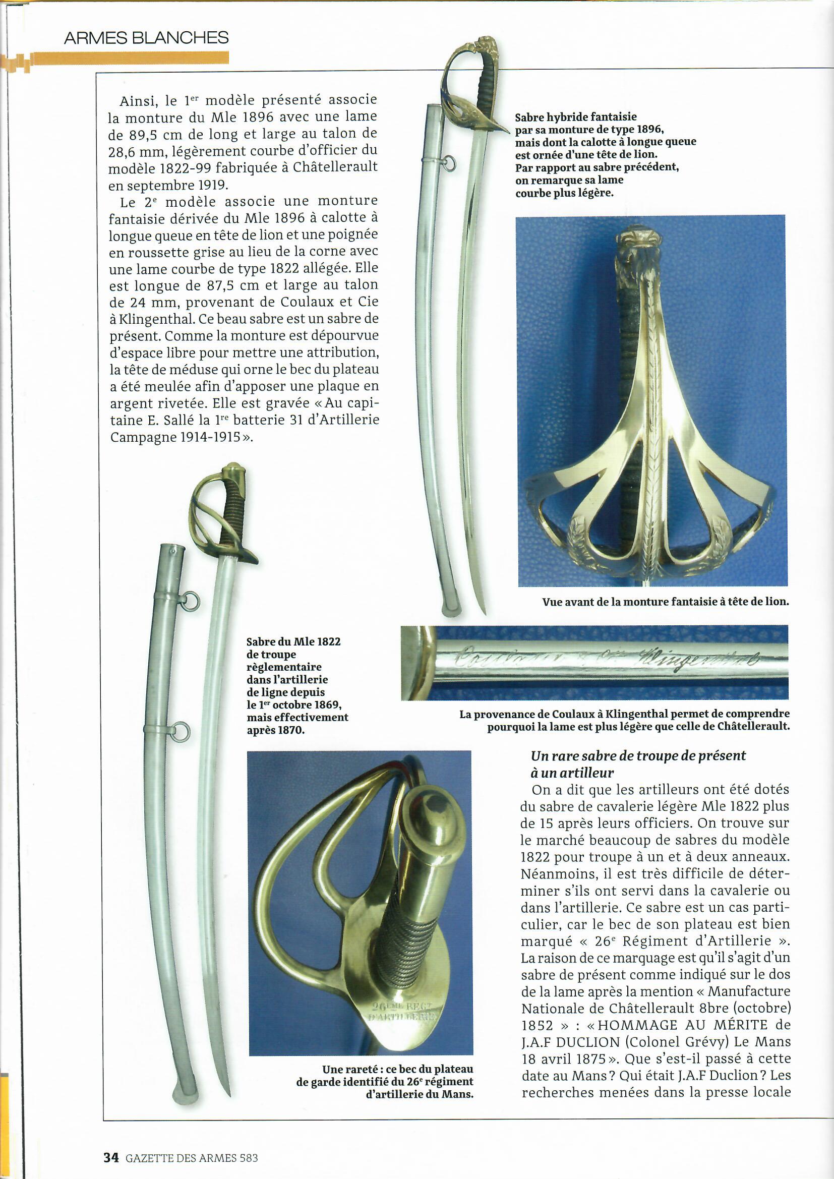 Nie daje przekładu bo dziś po kliknięciu aparatem danej stronki mamy tłumaczenie a każdy może użyć translatora, który najbardziej mu odpowiada. Artykuł popełnił Jean Ondry, dość regularnie pisze on dla tej gazety; napisał też 4 książki o francuskiej broni białej. Generalnie zajmuje się okresem 1815-1919. Z moich informacji wynika, że przygotowuje książkę o francuskiej szabli Marynarki Wojennej.
