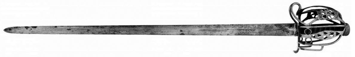 „….Kolejny typ nosi nazwę rapiera koszowego i charakteryzuje się głownią średniej długości (ok.80 cm; szer. u nasady 40-50 mm), zwykle ze zbroczami, rękojeść z całym systemem kabłąków i obłęków, tworzących pełną osłonę dla dłoni. Broń ta była wybitnie wojskowa, zarówno jazdy jak i piechoty......w Wenecji rozwinął się rapier koszowy tzw. schiavona”