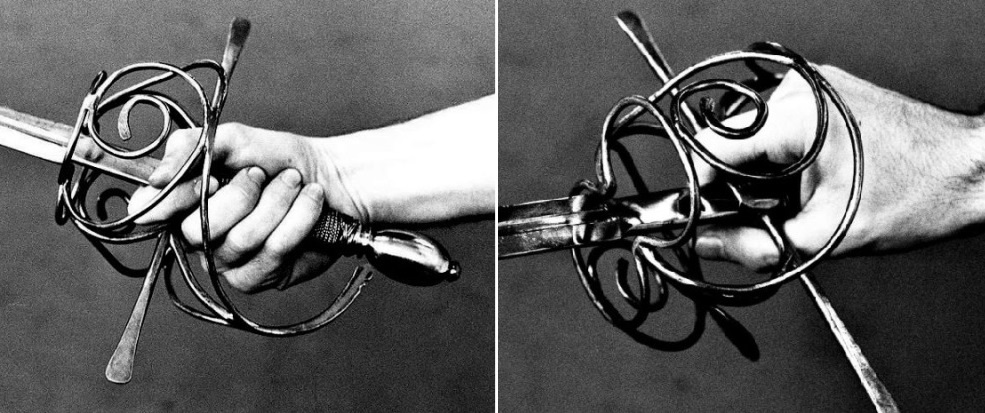 [8] – z traktatów szermierczych rapierem, możemy wywnioskować, że taka konstrukcja ramion jelca, służyła do chwytania – a wraz z tym do blokowania / zatrzymania - głowni rapiera przeciwnika.