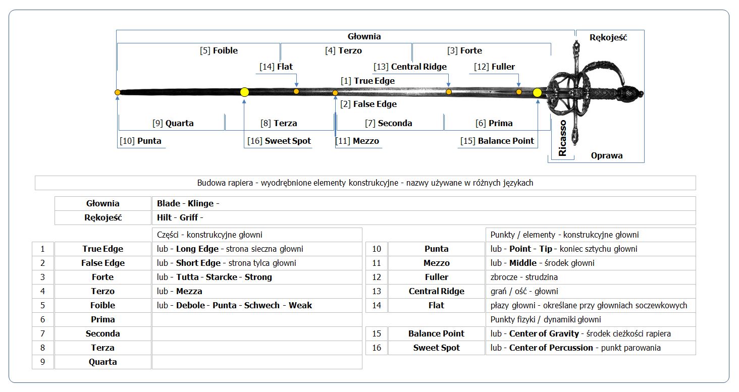 [2] – w Polsce rapiery jako broń rodzima – nie funkcjonowały. Logicznym jest, przyjęcie terminologii tych krajów, w których rapier był częścią historii.